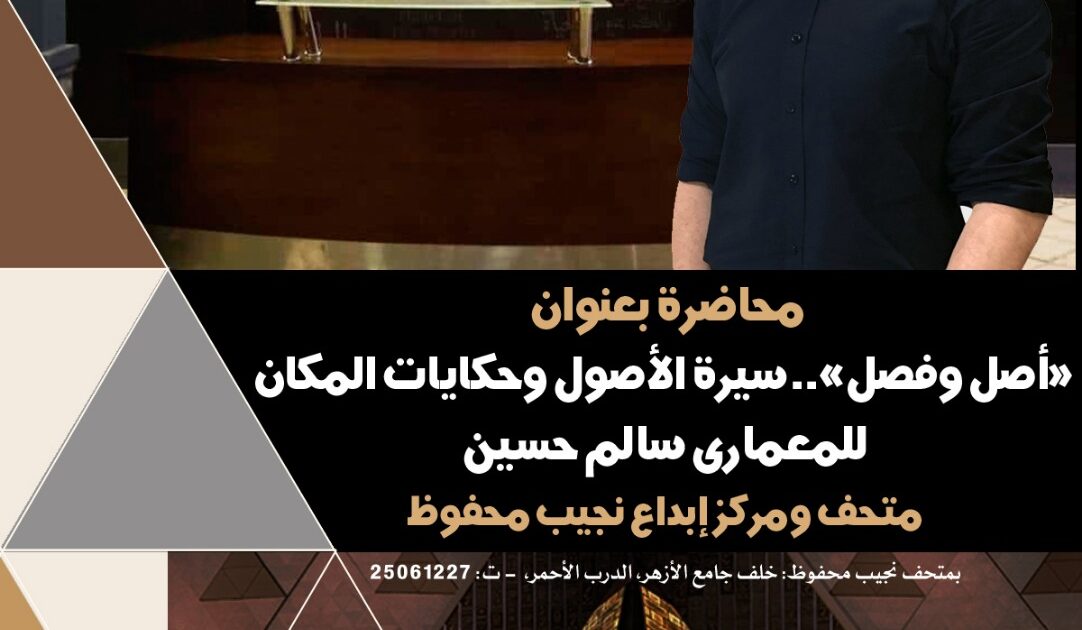 في إطار فعاليات متحف ومركز إبداع نجيب محفوظ بتكية محمد أبو الدهب، التابع لصندوق التنمية الثقافية، يقدّم المعماري سالم حسين محاضرة بعنوان “أصل وفصل.. سيرة الأصول وحكايات المكان”، وذلك في تمام الساعة السابعة مساء يوم السبت القادم 8 فبراير.