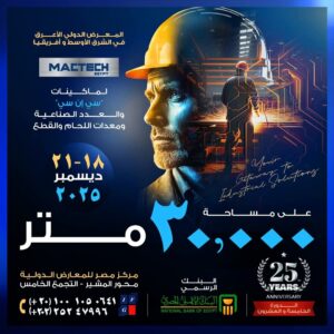 القاهرة  – صاحبة الجلالة –  تنطلق دورة اليوبيل الفضي للمعارض الصناعية الدولية ماك تك، هاندلينج، وإيرتك، خلال الفترة من 18 إلى 21 ديسمبر الجاري، بمركز مصر الدولي للمعارض – محور المشير، وذلك تحت رعاية وزارة الصناعة المصرية.
