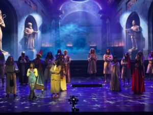 واستعرض العرض عددًا من أبرز أعمال باكثير التى تحولت إلى أعمال مسرحية وسينمائية، من بينها «وإسلاماه»، «الشيماء»، «سلامة»، إلى جانب مسرحيات مثل «جلفدان هانم»، «قطط وفئران»، «الحاكم بأمر الله»، وغيرها، مع تسليط الضوء على الشخصيات التاريخية والأسطورية التى تناولها الكاتب فى أعماله، فى معالجة جمعت بين العصور الفرعونية والإسلامية والحديثة.