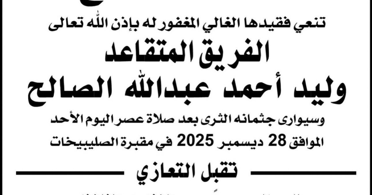 ديوان أبناء المرحوم عبدالرحمن الكندري يعزى عائلة الصالح