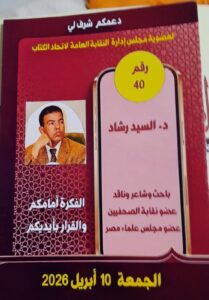 الرئيسية ⁄ أخبار ⁄ د٠السيد رشاد المرشح لعضوية مجلس نقابة اتحاد الكتاب: انشاء مدينة لكتاب مصر هى الأولى فى العالم