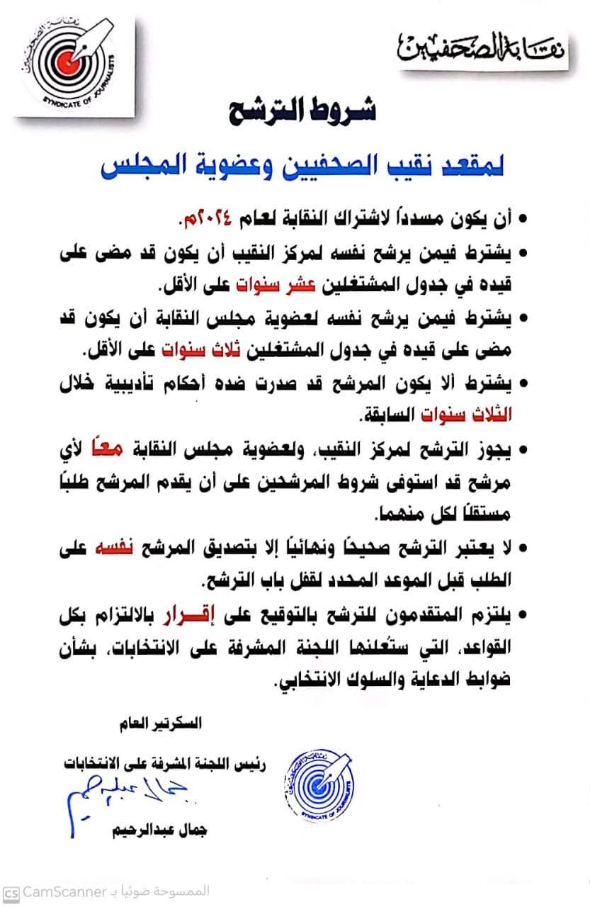 متابعة القراءةغدا ..فتح باب الترشح لانتخابات نقابة الصحفيين _______________________ تبدأ اللجنة المشرفة على الانتخابات بنقابة الصحفيين غدا الأحد 9 فبراير 2025 تلقي طلبات الترشح لانتخابات التجديد النصفي وتستمر حتي الخميس المقبل 13 فبراير 2025. وأعلن جمال عبد الرحيم سكرتير عام النقابة، ورئيس اللجنة المشرفة على الانتخابات، أن اللجنة المُشكلة من أعضاء