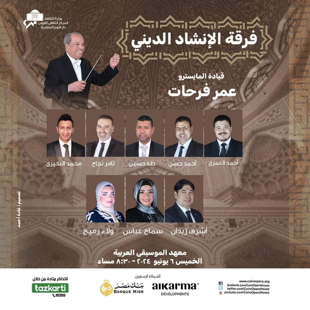 متابعة القراءةتنظم دار الأوبرا برئاسة الدكتورة لمياء زايد حفلا لفرقة الإنشاد الدينى بقيادة المايسترو عمر فرحات وذلك في الثامنة والنصف مساء الخميس 6 يونيو على مسرح معهد الموسيقى العربية . يتضمن البرنامج مجموعة من الأناشيد والابتهالات والتواشيح لكبار الملحنين منها عليك صلاة الله وسلامه لـ فريد الأطرش ، بشاير لـ