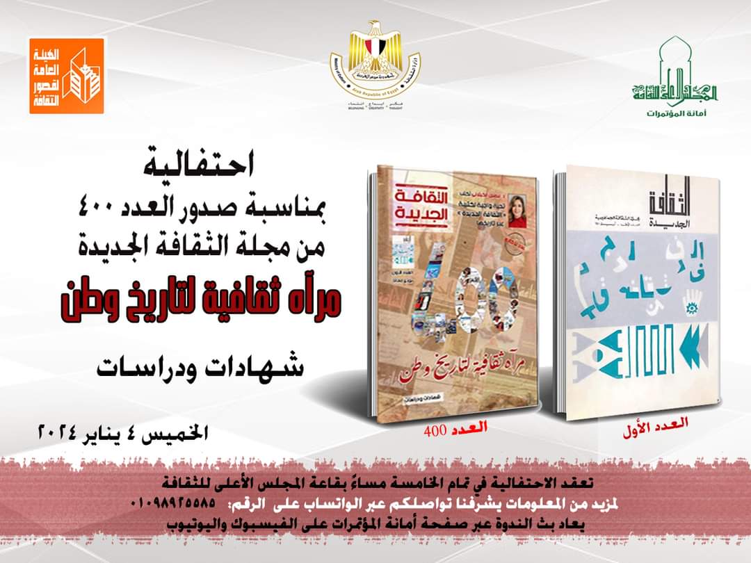 متابعة القراءةيقيم المجلس الأعلي للثقافة ندوة لمناقشة العدد 400 من مجلة الثقافة الجديدة "مرآه ثقافية لتاريخ وطن شهادات ودراسات" والصادرة عن الهيئة العامة لقصور الثقافة تحت رعاية الدكتورة نيفين الكيلاني وزيرة الثقافة- وبأمانة الدكتور هشام عزمي - الأمين العام للمجلس الأعلى للثقافة؛ والأستاذ عمرو بسيوني - رئيس الهيئة العامة لقصور الثقافة