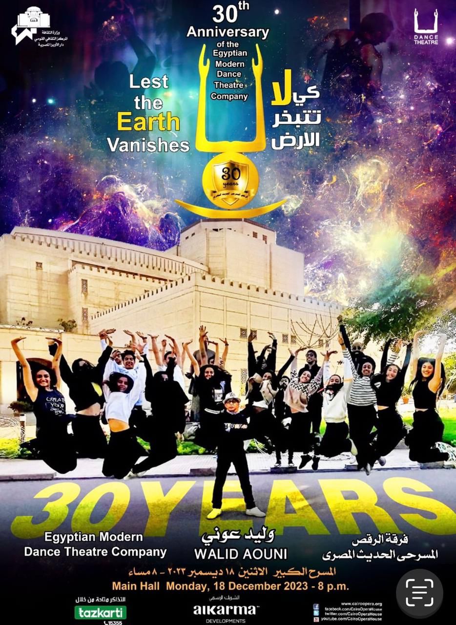 متابعة القراءةتقيم دار الاوبرا المصرية برئاسة الدكتور خالد داغر احتفالية فنية بمناسبة مرور 30 عام علي تأسيس فرقة الرقص المسرحي الحديث تضم عرض كي لا تتبخر الارض تصميم واخراج وليد عونى اضافة الى تكريم 16 شخصية من رموز الفرقة وذلك في الثامنة مساء الاثنين 18 ديسمبر علي المسرح الكبير . يقول