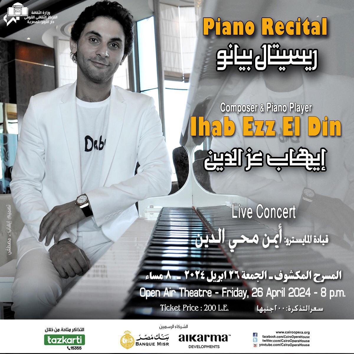 توالى وزارة الثقافة المصرية تقديم الوان الفنون الجادة حيث تنظم دار الاوبرا حفلاً لاعمال المؤلف الموسيقى وعازف البيانو إيهاب عز الدين ويقوده المايسترو أيمن محيى الدين وذلك في الثامنة مساء الجمعة 26 ابريل على المسرح المكشوف منها نهاية حب ، تحت قطرات المطر ، أحببتك قبل أن أعرفك ، سندباد